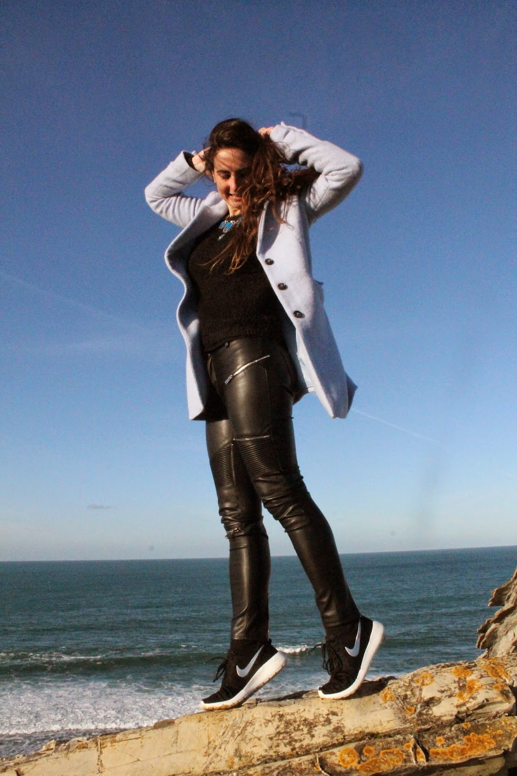 Vuelvo! He preparado 4 looks para enseñaros y con unas fotos que me encantan. Ayer fue un domingo más que provechoso, Alma, Marta y yo fuimos a Francia a pasar el día y aprovechamos para hacer una sesión de fotos tras otra. Pasamos un día perfecto. Espero repetir pronto por que me lo pase muy bien. El look es muy yo, fácil y rockero. El abrigo lo compré aprovechando las rebajas y me parece precioso, los pantalones de cuero rompen ese rollo bebé y las Nike terminan el look.